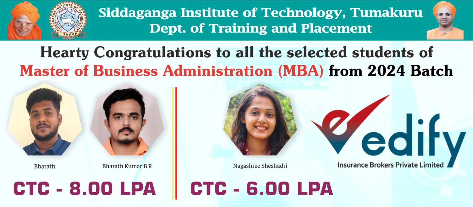 Siddaganga Institute of Technology was one among the very few engineering colleges started to offer MBA Programme in the year 1997. Initially the programme was affiliated to Bangalore University and later when Visvesvaraya Technological